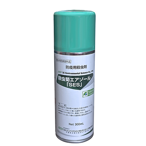除虫菊エアゾール「SES」 オーガニック対応(天然成分使用)の衛生害虫防除用エアゾールです ジョチュウギクエキスを使った天然成分のエアゾールです。 吹き付け時に除虫菊の香りが広がります。 防除用医薬部外品ですので、屋内で使用可能です。 仕様および梱包 用法用量: (ハエ・蚊)適用害虫から約90cm離れ、27㎡(約6畳)の部屋に約5秒間噴霧 成分・分量:ジョチュウギクエキス 1缶(300mL)中1.26g 包装:300mL×24(特注品) お見積りフォームへ
